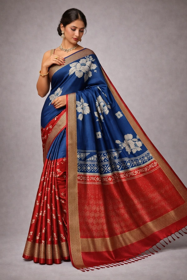 - Elegant Design: Carefully crafted to exude grace and poise, this saree features intricate patterns that reflect fine craftsmanship.